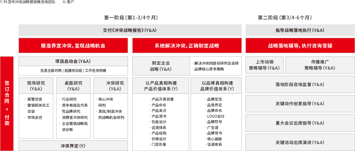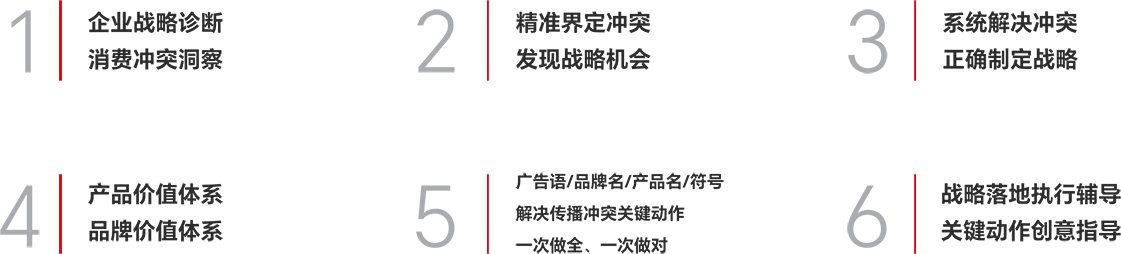 在精准界定冲突的基础上,通过系统解决冲突——进攻左脑,以产品真相构建产品价值体系,进攻右脑,以品牌真相构建品牌价值体系,帮助企业正确制定战略。一次做全、一次做对广告语/品牌名/产品名/符号等解决传播冲突的关键动作。